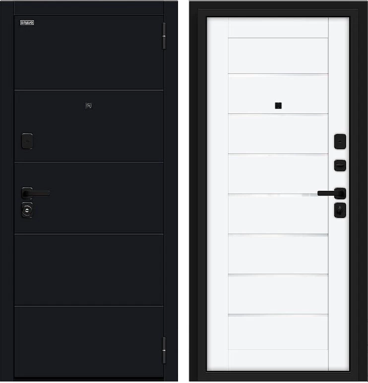 Надежная входная Дверь Браво Прайм/SBlack-Black Shell/White Silk премиум класса по цене 40 047 руб. Большая толщина стали защитит от проникновения в ваш дом, квартиру или коттедж. Используется очень качественная фурнитура: замки, цилиндры, ручки, защелки. Покрытие и отделка двери изготовлено под внимательным контролем производителя. Дверь имеет долгий срок службы и гарантию.